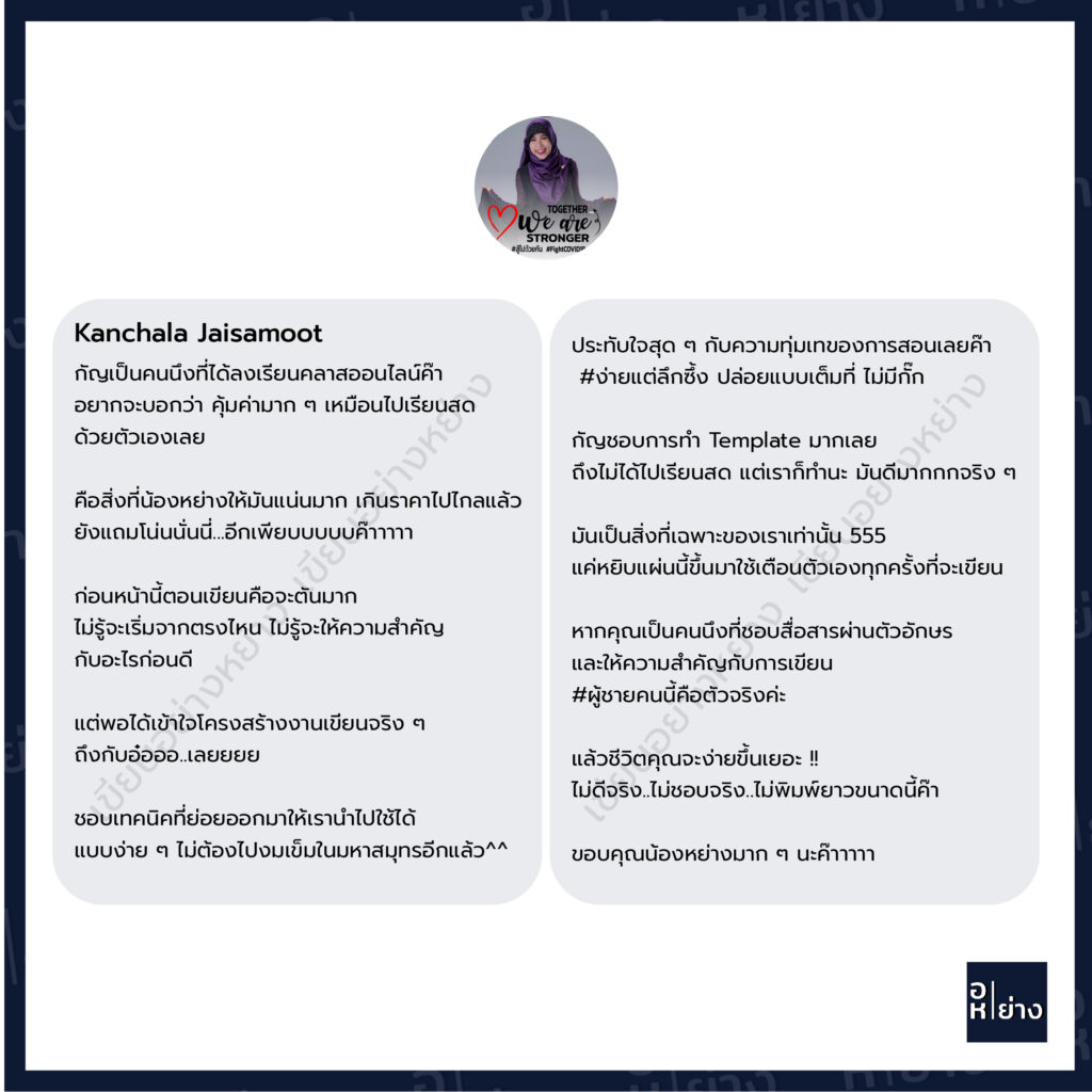 เพราะการที่คุณได้เห็นตัวอย่างคอนเทนต์ขายที่สร้างผลลัพธ์ได้จริง! คือวิธีการที่เร็วและง่ายที่สุดสำหรับคุณ ในการเริ่มต้นและพัฒนาการเขียนขายของคุณ!
