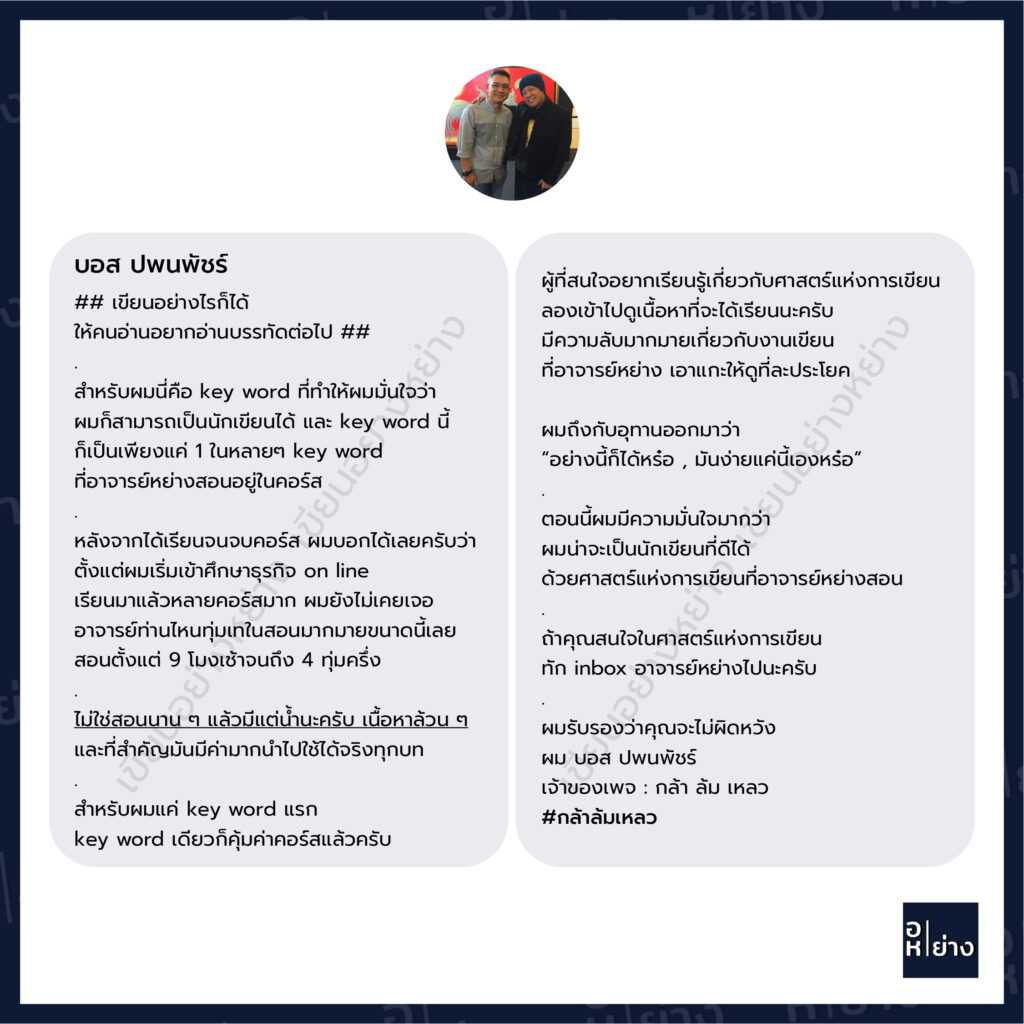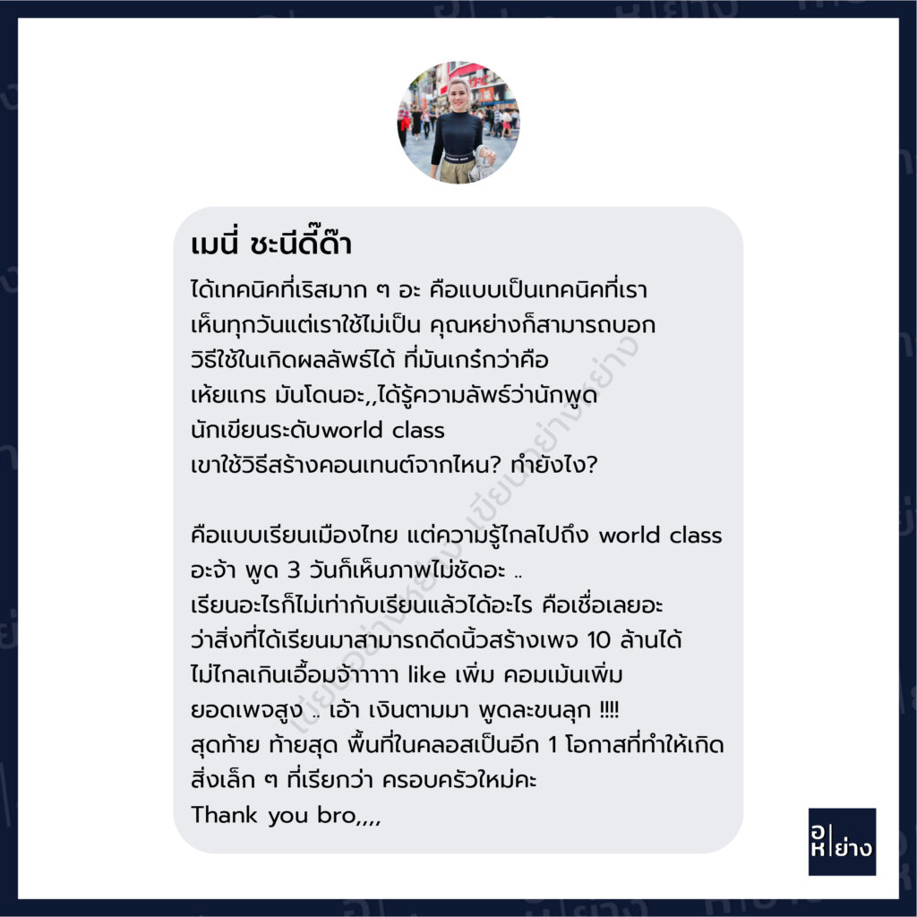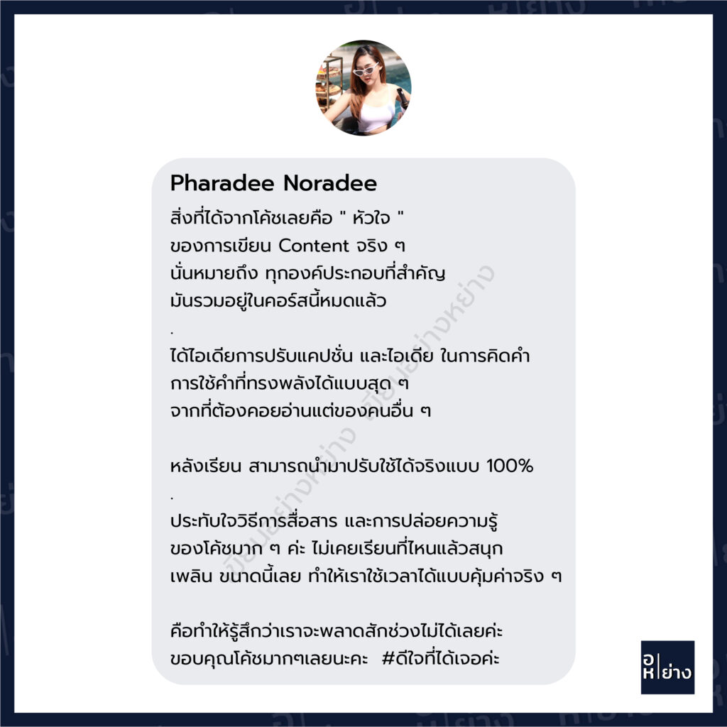 “ในคอร์สเขียนคอนเทนต์ยกระดับธุรกิจยอด 7 หลัก ด้วยคอนเทนต์ 1 ฉบับ”