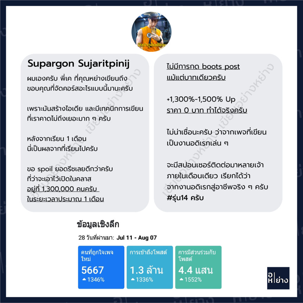 - 15แกะคอนเทนต์ Viral ผลงานของนักเรียนในคอร์ส ที่สามารถสร้าง Organic Reach ยอดทะลุล้าน โดยไม่ต้องยิงแอดเลยสักบาทเดียว กับเทคนิคที่เรียบง่าย ที่ผมจะขยี้ให้เห็นถึงพลังของมัน (พลังของคำเพียงคำเดียว ที่สามารถเปลี่ยนอารมณ์ และเปลี่ยนผลลัพธ์ให้คุณได้เลย)