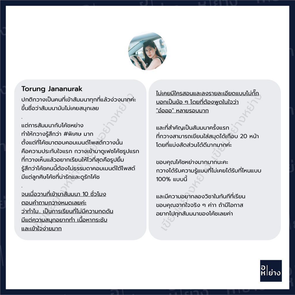 ปล. คุณจะรู้เองเมื่อเข้ามาในคอร์ส ว่าการบ้านนั้นคืออะไร และมีขั้นตอนอะไรอย่างไรบ้าง