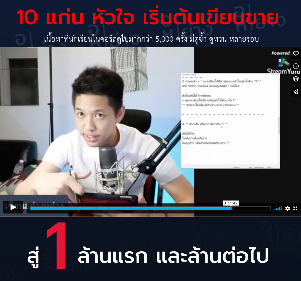 ผมจะเผยเส้นทางของผมที่ใช้การเขียนในการสร้างรายได้ หลักหมื่น หลักแสน จนไปถึงหลักล้าน ว่าผมทำอะไรบ้าง และผมจะบอกให้คุณทราบเลยว่า ผมได้หลักแสนตอนไหน ได้หลักล้านตอนไหน และทำอะไรบ้าง