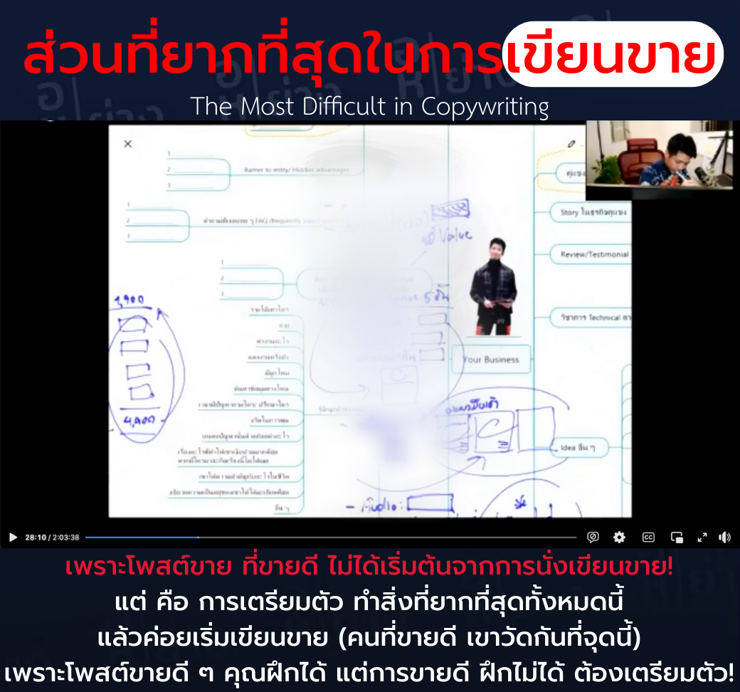 - 20Full Step การเขียน Copywriting ทักษะการเขียนขาย ที่จะทำให้คุณขายได้ทุกอย่าง ทุกรูปแบบการขาย (เขียน , VDO , Live สด) ที่จะทำให้คุณทำครั้งเดียว แล้วเอามายิง Ads ขายซ้ำ ได้เรื่อย ๆ (เจาะเคส Study จริง ยกตัวอย่าง ประยุกต์ ธุรกิจนักเรียนให้คุณเห็นภาพทันที)